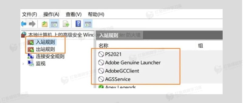 2. 该目录下有三个核心文件(Adobe Genuine Launcher.exe、AdobeGCClient.exe、AGMService.exe),直接删除后仍会自动重建,需用以下方式处理:新建空白记事本,分别重命名为上述三个exe文件名,替换目录中原文件;最后断开Adobe软件(如PS)启动文件的防火墙联网权限。