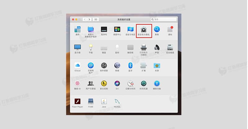 1. 打开「系统偏好设置」,找到「安全性与隐私」。
