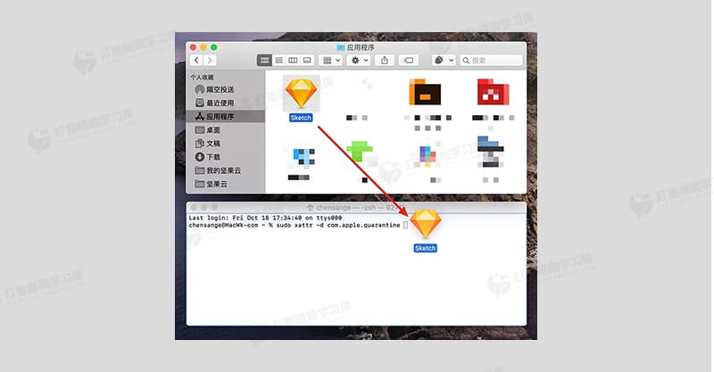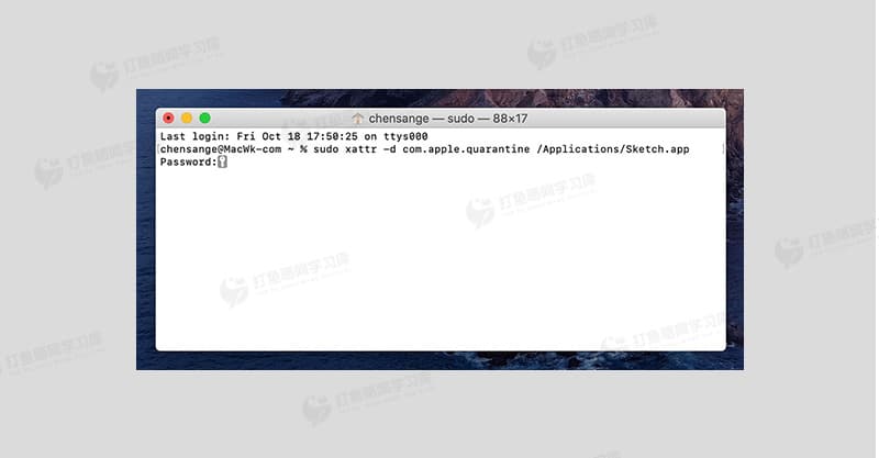 1. 打开终端,输入命令:`sudo xattr -d com.apple.quarantine /Applications/xxxxxx.app`(将“xxxxxx.app”替换为你的App名称,例如Sketch对应的命令为:`sudo xattr -d com.apple.quarantine /Applications/xxxx.app`)。