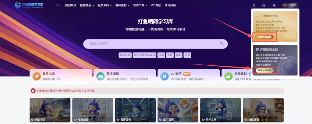 成为打鱼晒网学习库VIP会员,即可畅享海量付费级资源免费下载权限!平台所有资源均由站长付费采集、精心筛选,涵盖网络创业实操项目、黑科技工具软件、各类程序源码、专业技能课程等热门内容,一站式满足您的学习与变现需求。