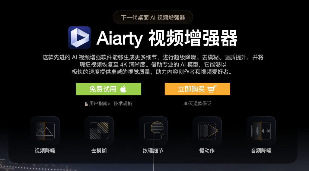 Aiarty Video Enhancer 是一款基于人工智能技术的视频画质增强工具,旨在通过AI算法自动修复、提升和优化低分辨率、模糊或老旧的视频,适用于影视修复、自媒体制作、安防监控等多个场景。